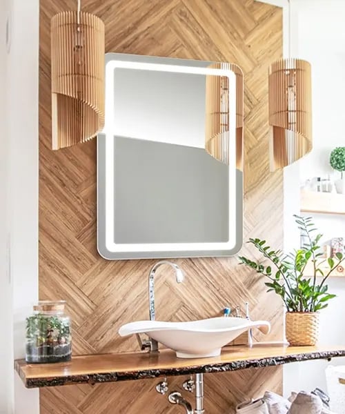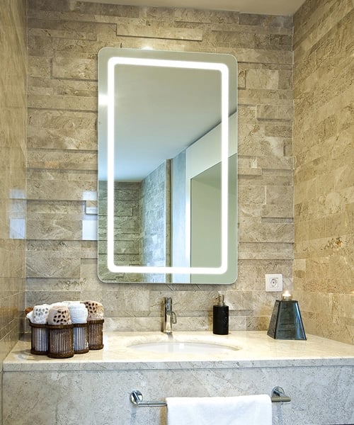 - Forward-facing task lighting for ideal makeup application and grooming