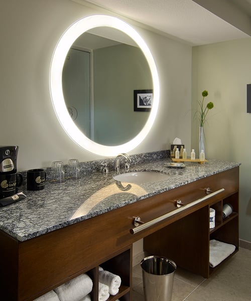 - Forward-facing task lighting for ideal makeup application and grooming